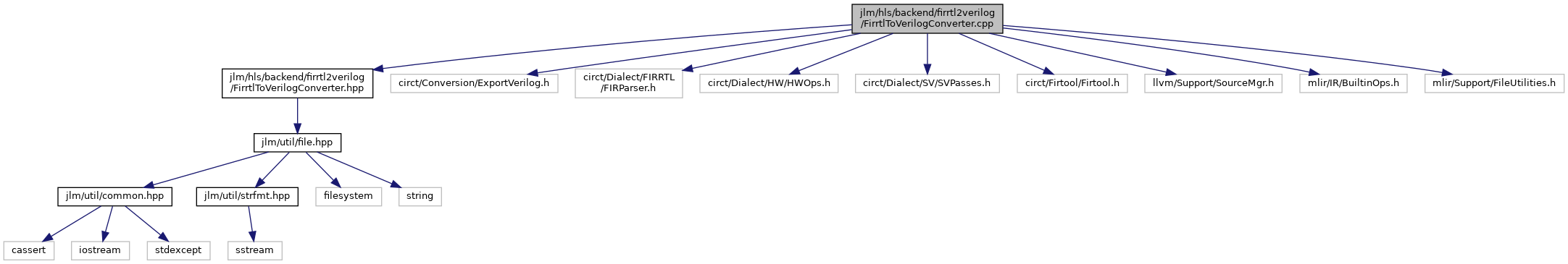 #include <jlm/hls/backend/firrtl2verilog/FirrtlToVerilogConverter.hpp>#include <circt/Conversion/ExportVerilog.h>#include <circt/Dialect/FIRRTL/FIRParser.h>#include <circt/Dialect/HW/HWOps.h>#include <circt/Dialect/SV/SVPasses.h>#include <circt/Firtool/Firtool.h>#include <llvm/Support/SourceMgr.h>#include <mlir/IR/BuiltinOps.h>#include <mlir/Support/FileUtilities.h>