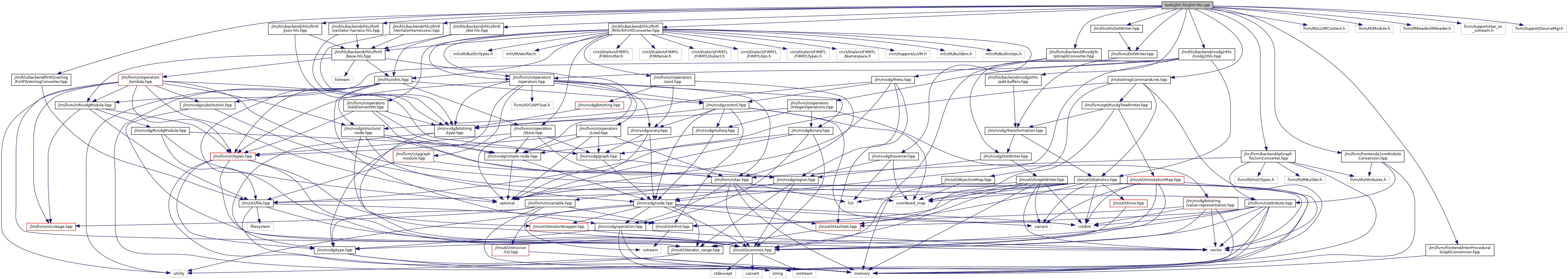 #include <jlm/hls/backend/firrtl2verilog/FirrtlToVerilogConverter.hpp>#include <jlm/hls/backend/rhls2firrtl/dot-hls.hpp>#include <jlm/hls/backend/rhls2firrtl/json-hls.hpp>#include <jlm/hls/backend/rhls2firrtl/RhlsToFirrtlConverter.hpp>#include <jlm/hls/backend/rhls2firrtl/verilator-harness-hls.hpp>#include <jlm/hls/backend/rhls2firrtl/VerilatorHarnessAxi.hpp>#include <jlm/hls/backend/rvsdg2rhls/add-buffers.hpp>#include <jlm/hls/backend/rvsdg2rhls/rvsdg2rhls.hpp>#include <jlm/hls/HlsDotWriter.hpp>#include <jlm/llvm/backend/IpGraphToLlvmConverter.hpp>#include <jlm/llvm/backend/RvsdgToIpGraphConverter.hpp>#include <jlm/llvm/DotWriter.hpp>#include <jlm/llvm/frontend/InterProceduralGraphConversion.hpp>#include <jlm/llvm/frontend/LlvmModuleConversion.hpp>#include <jlm/tooling/CommandLine.hpp>#include <llvm/IR/LLVMContext.h>#include <llvm/IR/Module.h>#include <llvm/IRReader/IRReader.h>#include <llvm/Support/raw_os_ostream.h>#include <llvm/Support/SourceMgr.h>